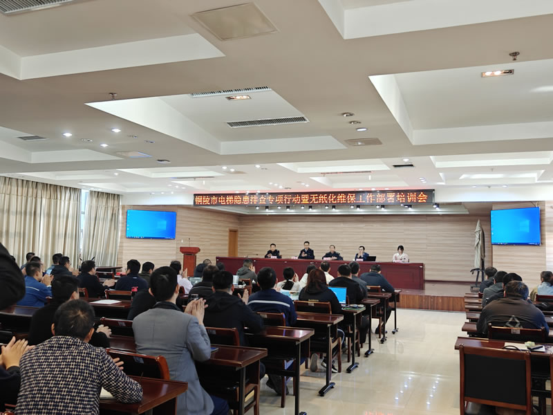 11月8日上午,銅陵市市場監管局黨組成員、副局長王健康主持召開全市電梯隱患排查專項行動暨無紙化維保工作部署培訓會,各縣區特設股股長、全市電梯維保單位負責人共80余人參加會議。