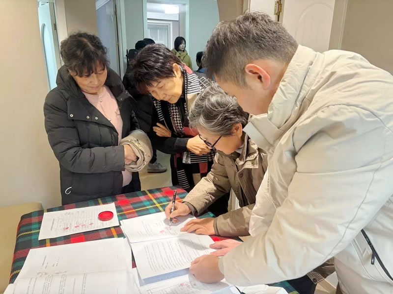12月17日,在省委大院小區加裝電梯簽約現場,115棟3單元業主代表們堅定地在合同上簽下了自己的名字,并鄭重地按下了紅手印,期盼已久的“電梯夢”終于實現了,居民們紛紛喜笑顏開。